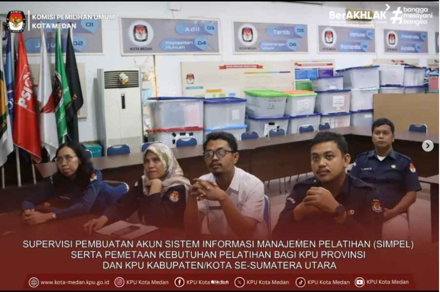 Biro Pusat Pengembangan Kompetensi Sumber Daya Manusia (PKSDM) KPU RI melaksanakan kegiatan supervisi pembuatan akun Sistem Informasi Manajemen Pelatihan (SiMPEL) serta pemetaan kebutuhan pelatihan bagi KPU Provinsi dan KPU Kabupaten/Kota se-Sumatera Utara. Kegiatan ini berlangsung secara daring pada Selasa (18/11/2025).