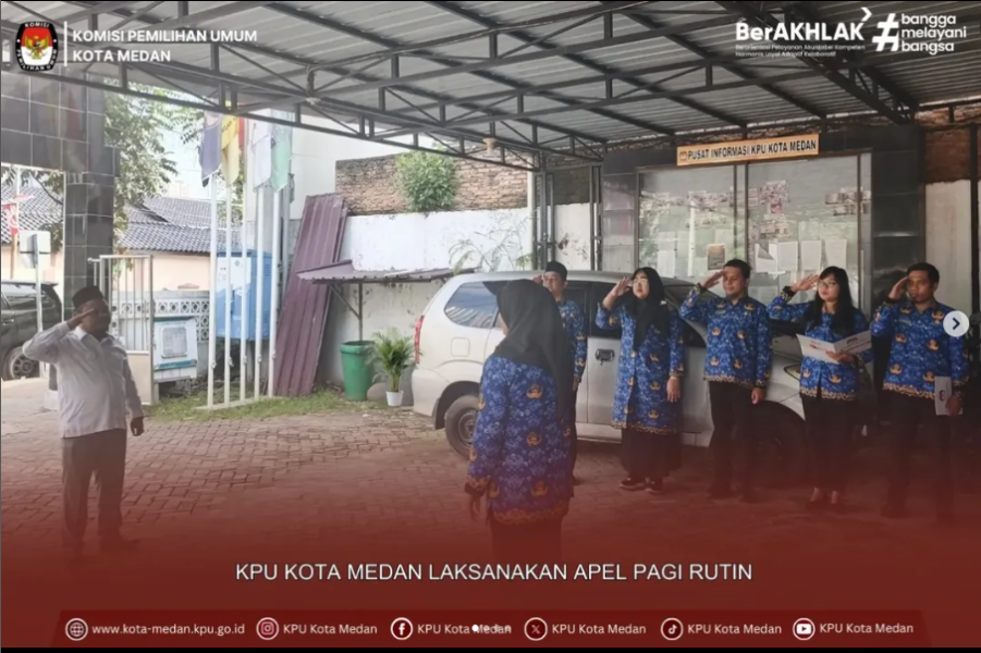 #TemanPemilih, Anggota Komisi Pemilihan Umum (KPU) Kota Medan, M. Taufiqurrohman Munthe, bertindak selaku Pembina pada Apel Pagi yang dilaksanakan di halaman Kantor KPU Kota Medan pada Senin (17/11/2025).
