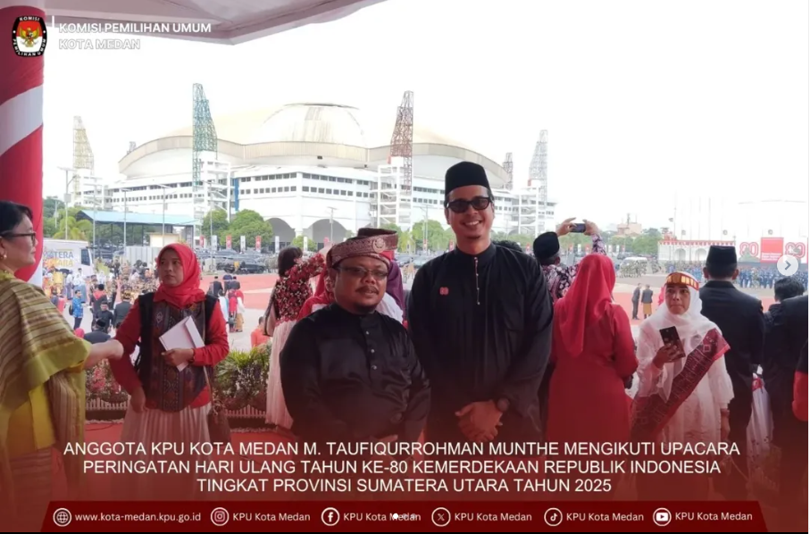 #Teman Pemilih, Anggota KPU Kota Medan M. Taufiqurrohman Munthe menghadiri Upacara Bendera Peringatan Hari Ulang Tahun ke-80 Kemerdekaan Republik Indonesia Tingkat Provinsi Sumatera Utara Tahun 2025 , Minggu (17/08/25).