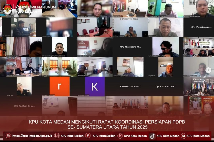 KPU Kota Medan mengikuti kegiatan Rapat Koordinasi Persiapan Pemutakhiran Daftar Pemilih Berkelanjutan (PDPB) Tingkat KPU Kabupaten/Kota Se-Sumatera Utara Tahun 2025