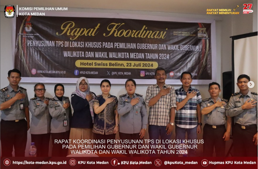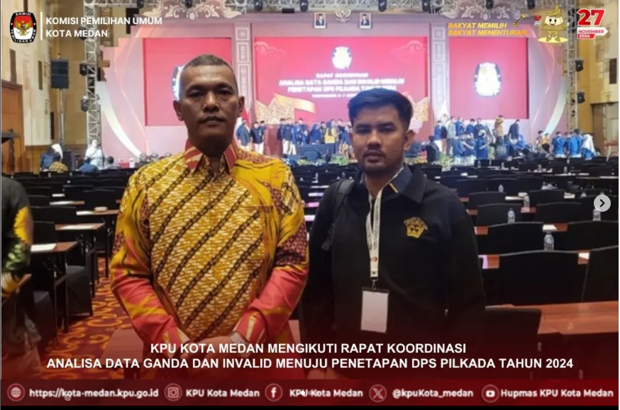 Dari KPU Kota Medan, rakor diikuti oleh Ketua KPU Kota Medan Mutia Atiqah, Anggota KPU Kota Medan Divisi Hukum dan Pengawasan Zefrizal, Sekretaris KPU Kota Medan Ahmad Nurdin, Kasubbag Hukum dan SDM KPU Kota Medan Ramdani A. Harahap, dan Kasubbag Keuangan, Umum dan Logistik KPU KPU Kota Medan Fadilla Rionanda Siregar. https://www.instagram.com/p/C-Cu5fUSTsc/?utm_source=ig_web_copy_link&igsh=MzRlODBiNWFlZA==