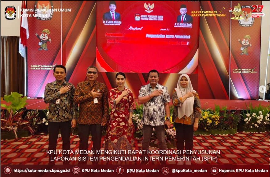 #TemanPemilih, KPU Kota Medan mengikuti rapat koordinasi (rakor) penyusunan laporan Sistem Pengendalian Intern Pemerintah (SPIP) pada Pemilihan Gubernur dan Wakil Gubernur, Bupati dan Wakil Bupati, Walikota dan Wakil Walikota Tahun 2024 yang diselenggarakan oleh KPU Provinsi Sumatera Utara pada tanggal 26 s.d 28 Juli 2024 di The Hill Hotel & Resort Sibolangit. Rakor dibuka secara resmi oleh Agus Arifin Ketua KPU Provinsi Sumatera Utara.