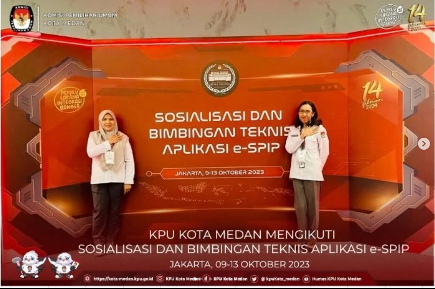#TemanPemilih, KPU Kota Medan mengikuti kegiatan Sosialisasi dan Bimbingan Teknis Aplikasi e-SPIP yang diselenggarakan oleh KPU RI bertempat di Jakarta, pada hari Senin-Jumat (09-13/10/2023). Kegiatan Sosialisasi dan Bimbingan Teknis Aplikasi e-SPIP ini dibuka oleh Ketua KPU RI, Hasyim Asy’ari didampingi oleh Anggota KPU RI, Mochammad Afifuddin, Persadaan Harahap dan Yulianto Sudrajat bersama Sekretaris Jenderal KPU RI, Bernad Dermawan Sutrisno. Kegiatan ini dihadiri oleh jajaran pejabat Eselon I dan II Setjen KPU; Ketua, Divisi Hukum dan Pengawasan KPU/KIP Provinsi, Sekretaris serta Kepala Bagian Hukum dan SDM KPU/KIP Provinsi; Ketua, Divisi Hukum dan Pengawasan KPU/KIP Kabupaten/Kota, Sekretaris, Kasubbag Hukum dan SDM serta operator SPIP KPU/KIP Kabupaten/Kota dari 38 Provinsi se-Indonesia. Hadir dalam Bimtek tersebut Ketua KPU Kota Medan Agussyah R. Damanik, Divisi Hukum dan Pengawasan KPU Kota Medan Zefrizal, Sekretaris KPU Kota Medan Ahmad Nurdin, Kasubbag Hukum dan SDM KPU Kota Medan Ramdhani A. Harahap serta operator SPIP Tomita J. Sitompul. https://www.instagram.com/p/CyYXHy7P_rz/?utm_source=ig_web_copy_link&igsh=MzRlODBiNWFlZA== #KPUMelayani #PemiluSerentak2024