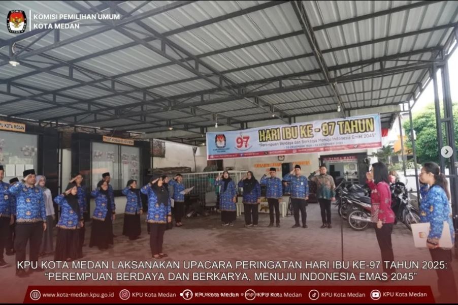 #TemanPemilih, KPU Kota Medan melaksanakan Upacara Peringatan Hari Ibu ke-97 Tahun 2025 dengan khidmat di halaman kantor KPU Kota Medan, Senin (22/12/2025).