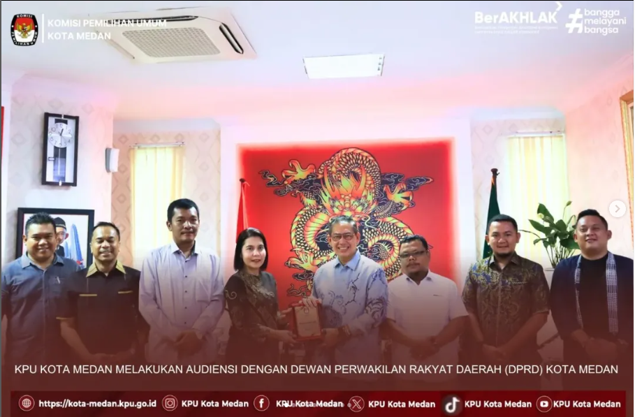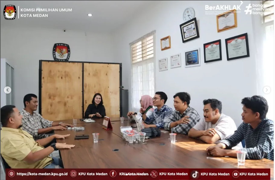#TemanPemilih, Ketua KPU Kota Medan Mutia Atiqah didampingi Anggota KPU Kota Medan Saut Haornas Sagala dan Bobby Niedal Dalimunthe menerima audiensi Pengurus Himpunan Mahasiswa Islam (HMI) Cabang Medan periode 2025-2026 di Kantor KPU Kota Medan. Audiensi ini sendiri dilakukan untuk berdiskusi dan berkolaborasi dengan KPU Kota Medan dalam rangka menciptakan kebermanfaatan yang luas kepada masyarakat sebagaimana Tri Dharma Perguruan Tinggi melalui berbagai program yang telah dicanangkan khususnya berkaitan dengan permanfaatan bonus demografi di Indonesia. KPU Kota Medan menyambut dengan baik kedatangan Pengurus HMI Cabang Medan HMI dan mengajak HMI Cabang Medan untuk selalu berperan serta dalam melakukan sosialisasi dan pendidikan pemilih untuk meningkatkan partisipasi masyarakat, khususnya pemilih pemula dan pemilih muda pada Pemilu dan Pilkada selanjutnya. Dari HMI Cabang Medan hadir Ketua Umum Cici Indah Rizki, Sekretaris Umum Zahfal Ananda, Ketua Bidang Demokrasi dan Politik Ilham Panggabean, Departemen PDP T. Ariz Apriliansyah dan B. Firdaus. https://www.instagram.com/p/DLo6CNCTm_h/?img_index=2