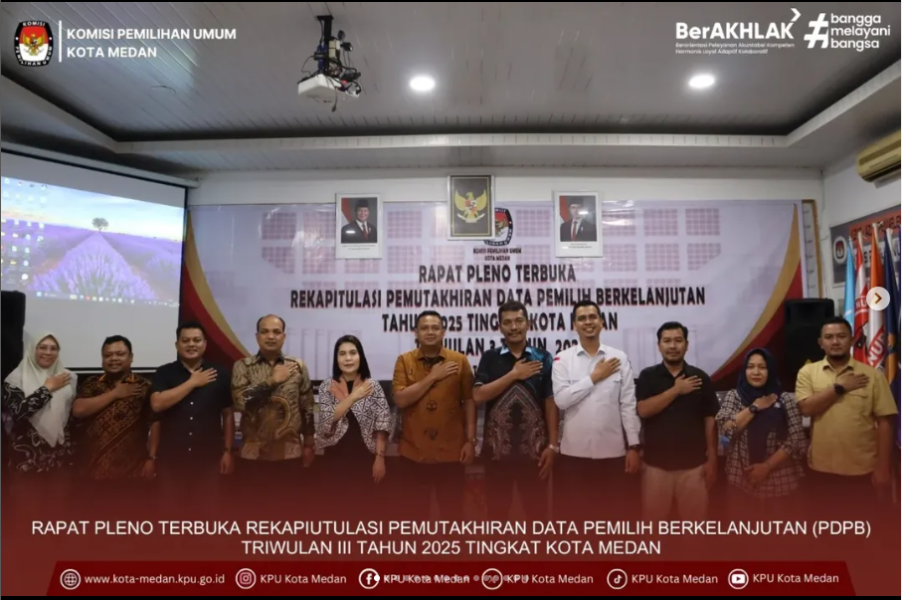 #TemanPemilih, KPU Kota Medan melaksanakan Rapat Pleno Terbuka Pemutakhiran Data Pemilih Berkelanjutan (PDPB) Triwulan III Tahun 2025 Tingkat Kota Medan, Jum'at (03/10/2025).