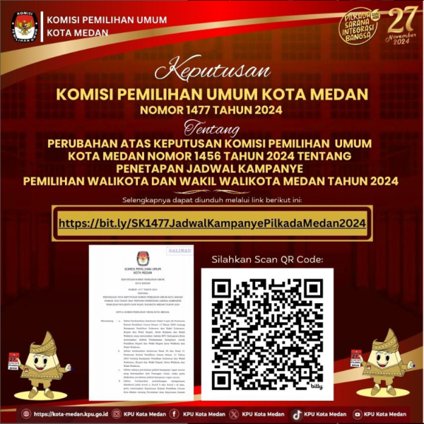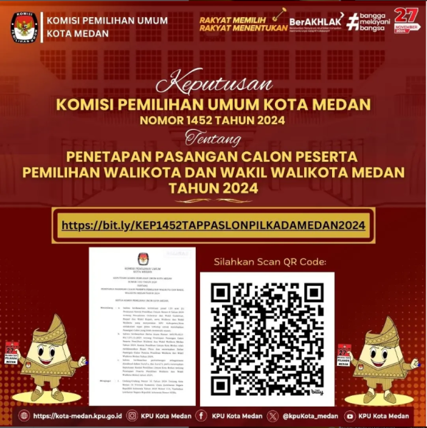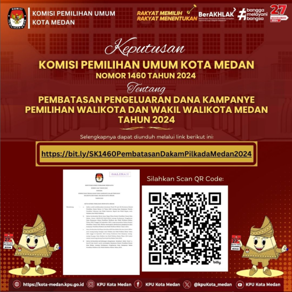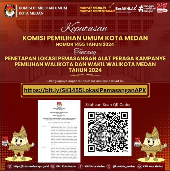 Komisi Pemilihan Umum Kota Medan Pada Pemilihan Walikota Dan Wakil Walikota Medan Tahun 2024. Selengkapnya dapat diunduh melalui link berikut ini: